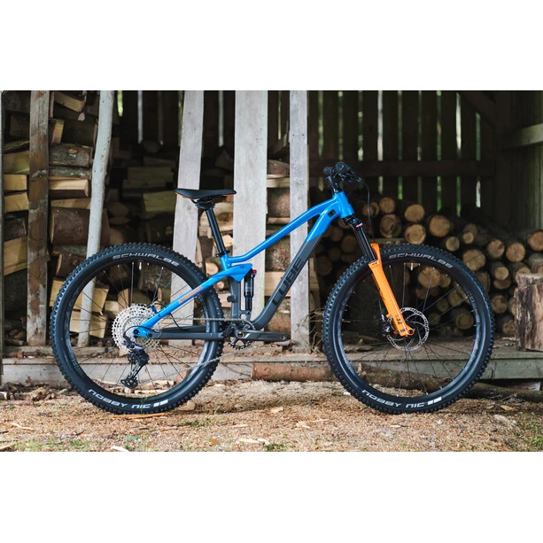 Le Stereo 120 est à juste titre l’un des vélos de montagne les plus populaires, ce qui n’est guère surprenant, après tout il offre beaucoup de confort, de polyvalence et de plaisir de conduite en dehors des routes. Il va sans dire que le Stereo 120 Rookie, plus petit et aux proportions adaptées aux enfants pour les jeunes amateurs de tout-terrain, fait de même. Cube l’a également doté d’une fourche suspendue Suntour facilement réglable, qui offre à la fois un amortissement confortable et un contrôle optimal du vélo. Shimano propose le vaste système de changement de vitesse 1×12, connu pour sa facilité d’utilisation et sa grande fiabilité. Et les freins à disque hydrauliques Magura MT Thirty sont suffisamment puissants pour immobiliser le vélo en cas de besoin. Que ressort-il de tout cela ? Un plaisir sans fin sur la piste et de grands sourires sur nos visages.