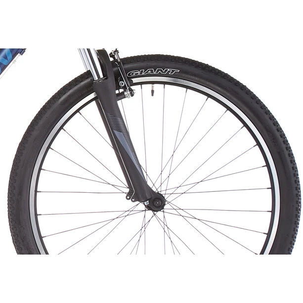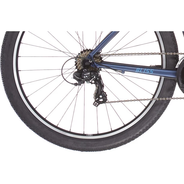 Une fourche suspendue de 75 mm assure performance et légèreté.